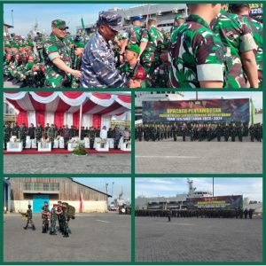 Belawan.Matalensa.co.id.TNI AL, Pasmar 1. Wakil Komandan Batalyon Marinir Pertahanan Pangkalan (Wadan Yonmarhanlan) I Mayor Marinir Santri M.S Sitepu mewakili Danyonmarhanlan I mengikuti Upacara penyambutan Purna Tugas Satgas Pamtas Kewilayahan Yonif 125/SMB Tahun 2023-2024 di Dermaga 103 Pelindo Belawan, Medan Sumatera Utara. Kamis (19/09/2024)