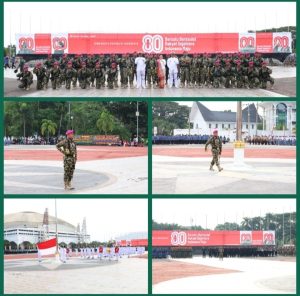 Dengan Barisan gagah dan rapi dari SSK gabungan TNI – Polri Wilayah Sumut, Satpol PP Provsu, BPBD Provsu, Dishub Provsu, ASN TNI-Polri , ASN Pemprov. Sumut dan 1 SST Pramuka dan Mahasiswa serta Siswa/i SMA yang di pimpin oleh Letkol Marinir Remon Dabukke, M.Tr., Opsla dengan penuh wibawa dan suara lantang semakin menegaskan khidmatnya upacara sore itu.